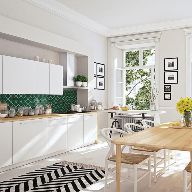 Nhà bếp là không gian nấu nướng,sử dụng gạch mosaic lồng đèn ốp lát như hàng ngàn chiến đèn lồng thắp sáng không gian nấu nướng sẽ làm cho căn bếp trở nên thú vị hơn.