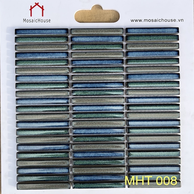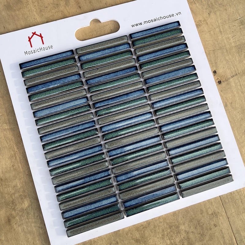 GẠCH MOSAIC QUE ĐŨA MHT 008 Màu Sắc : Mix 3 màu Loại men : men rạn, trơn , bóng. Kích thước viên : 12.1 x 92.2 mm Kích thước vỉ: 284 mm x 296 mm Độ dày : 6mm Quy cách : 12 vĩ = 1.0093m2 Đóng gói : 1 thùng 20 vĩ = 1.682 m2 Cân Nặng : 24,6 Kg Sử dụng: Gạch mosaic que đũa thường dùng trong trang trí nội ngoại thất nhà bếp, phòng tắm, phòng ngủ,quầy bar.