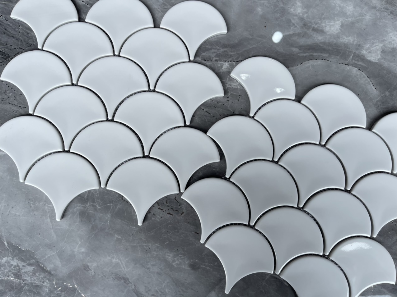 Gạch mosaic vảy cá có thiết kế độc đáo, giúp tạo điểm nhấn ấn tượng cho không gian ứng dụng. Bạn có thể sử dụng gạch vảy cá ốp bếp, phòng tắm, trang trí phòng khách, phòng ngủ