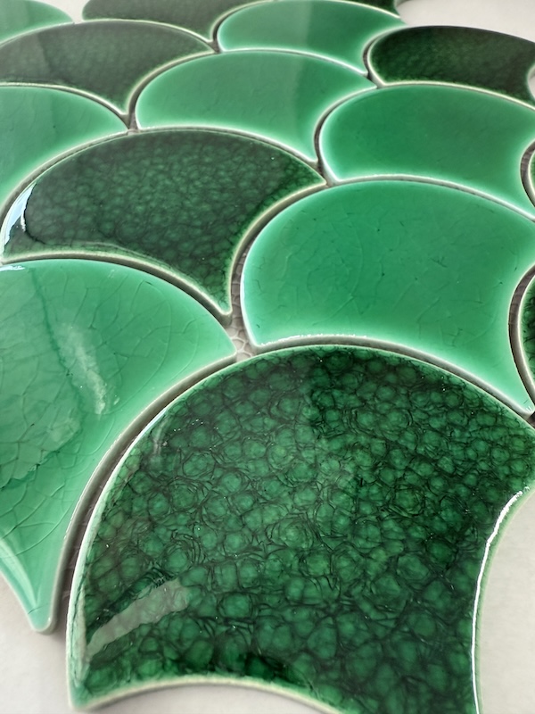 Gạch mosaic vảy cá có thiết kế độc đáo, giúp tạo điểm nhấn ấn tượng cho không gian ứng dụng. Bạn có thể sử dụng gạch vảy cá ốp bếp, phòng tắm, trang trí phòng khách, phòng ngủ